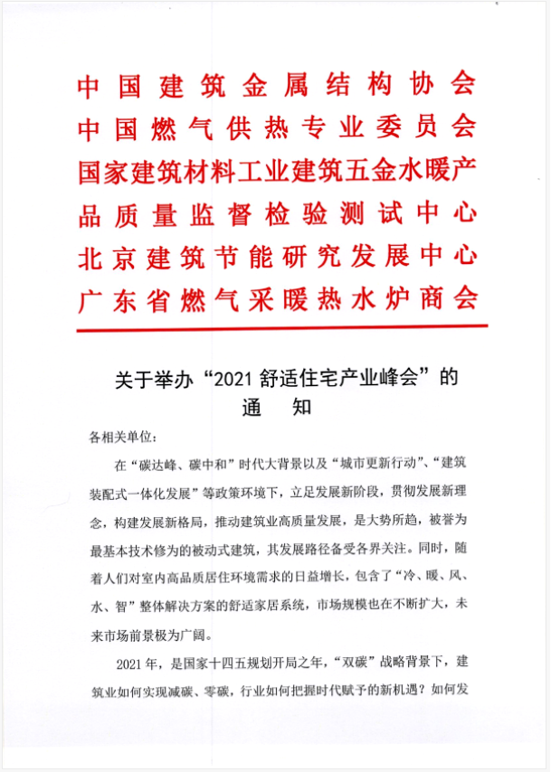 2021年,是国家十四五规划开局之年,“双碳”战略背景下,建筑业如何实现减碳、零碳,行业如何把握时代赋予的新机遇?如何发挥舒适家居系统主动节能的优势与节能建筑完美融合?行业如何探寻动态融合新路径?为了更好地畅谈行业发展趋势,促进产业融合,本次舒适住宅产业峰会将在山东济南隆重举行。峰会期间将举行舒适家居生态链峰会、新风净化行业发展峰会、壁挂炉行业发展峰会、中国被动房应用与发展论坛暨环境解决方案交流会等。届时,组委会将邀请跨领域的国内专家学者,房地产开发与设计单位,采暖、新风系统、净水、节能建材等知名生产企业、全国各地的舒适家居集成商、暖通代理商、施工安装售后服务单位等企业负责人到会。探讨行业的发展方向、技术和标准,集聚超低能耗建筑与舒适住宅相关产业核心资源,探寻跨行业、跨领域的融合与协作之路。